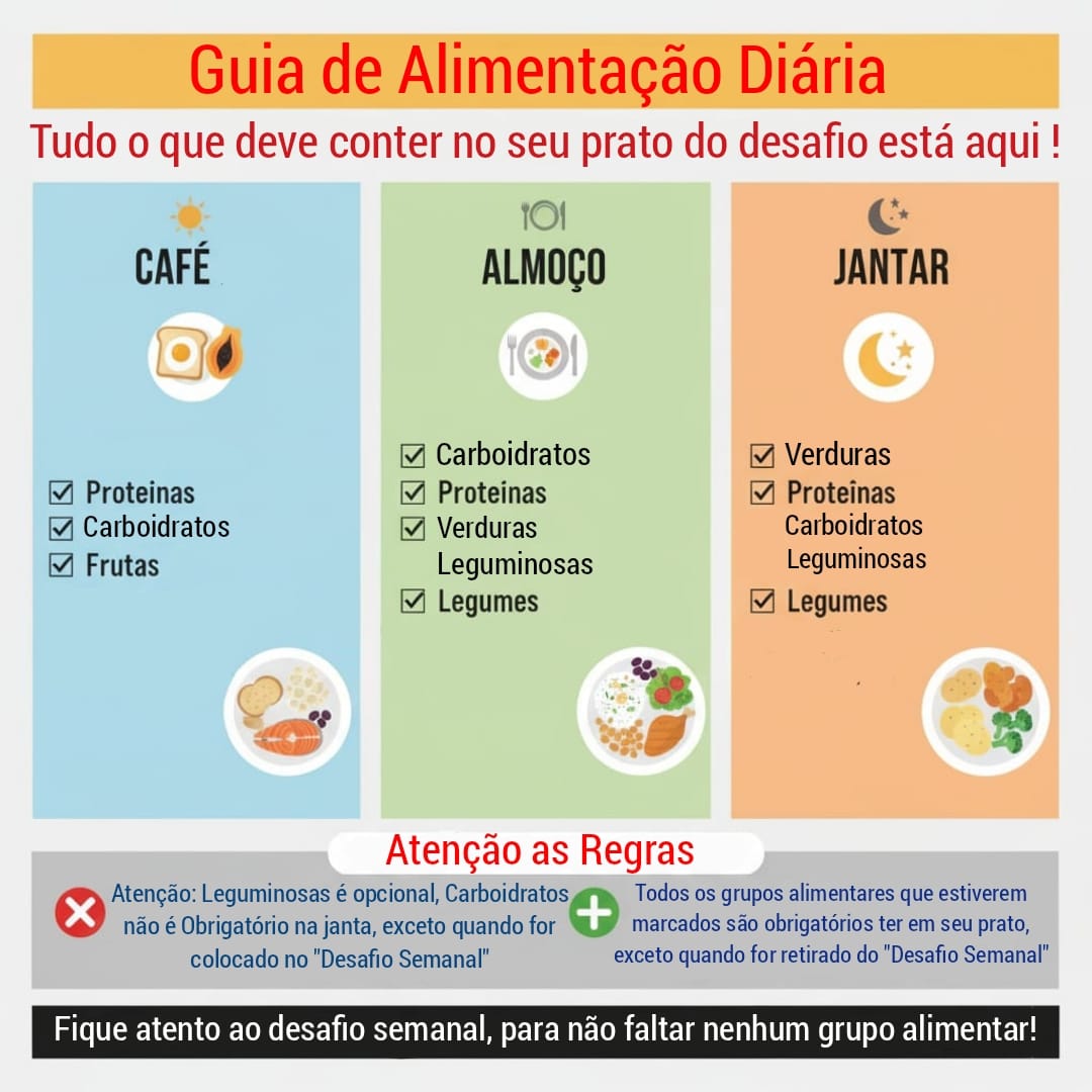 É obrigatório ter todos os grupos alimentares, a Leguminosa é opcional sendo obrigatória quando estiver no desafio semanal.